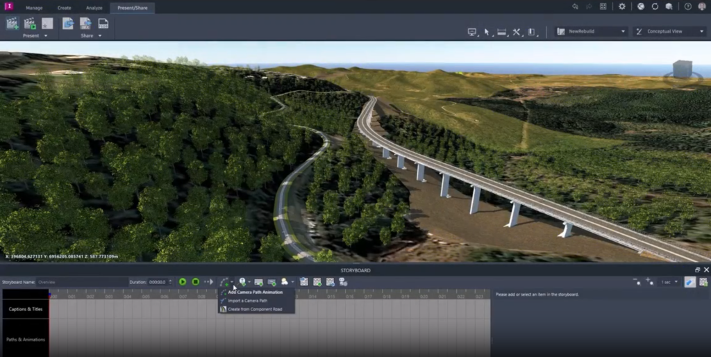 Wizualizowanie koncepcyjnych wariantów projektu dla projektów jezdni, kolei i transportowych oraz infrastruktury lądowej i gospodarki wodnej.