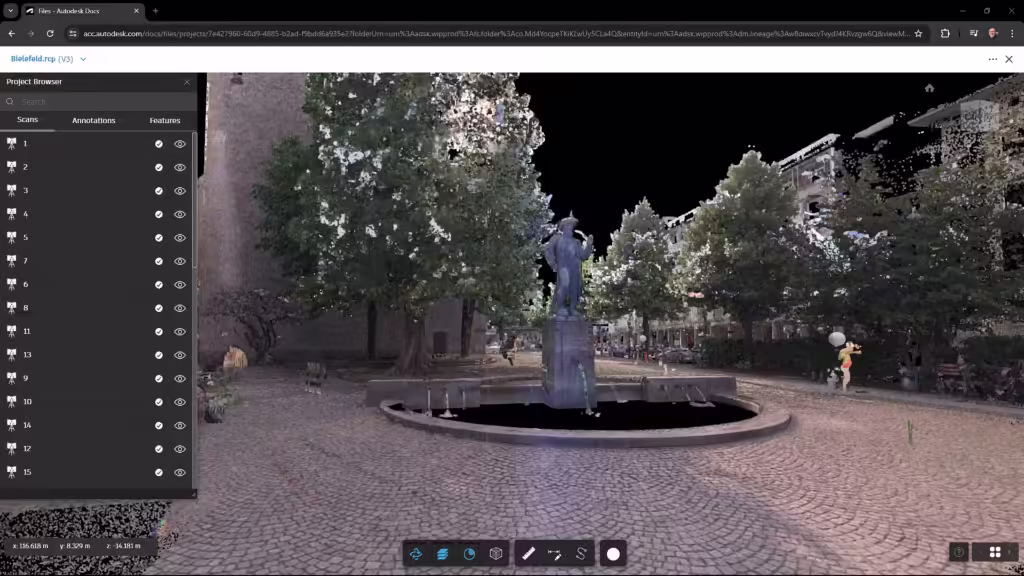Na podstawie skanów laserowych i fotografii można generować dokładne, inteligentne modele do szerokiego zastosowania w architekturze, inżynierii i budownictwie (AEC).